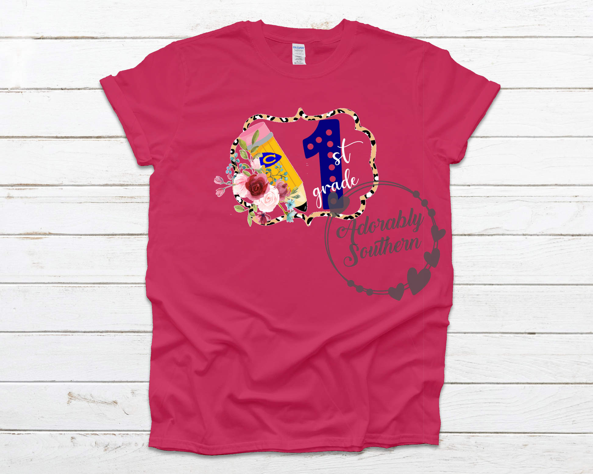 Vinyl designs are placed on quality unisex t-shirts with a professional heat press.