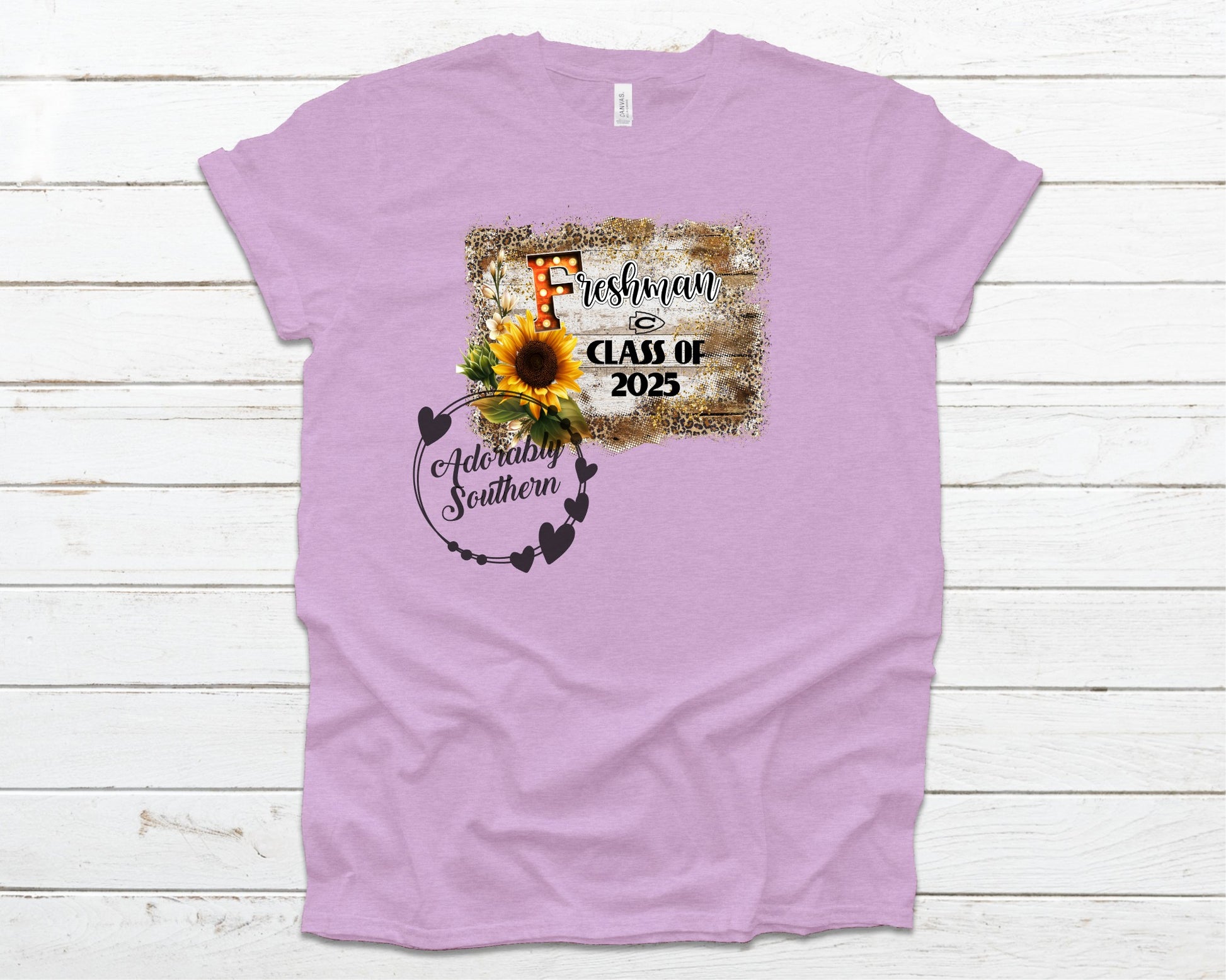 Vinyl designs are placed on quality unisex t-shirts with a professional heat press.