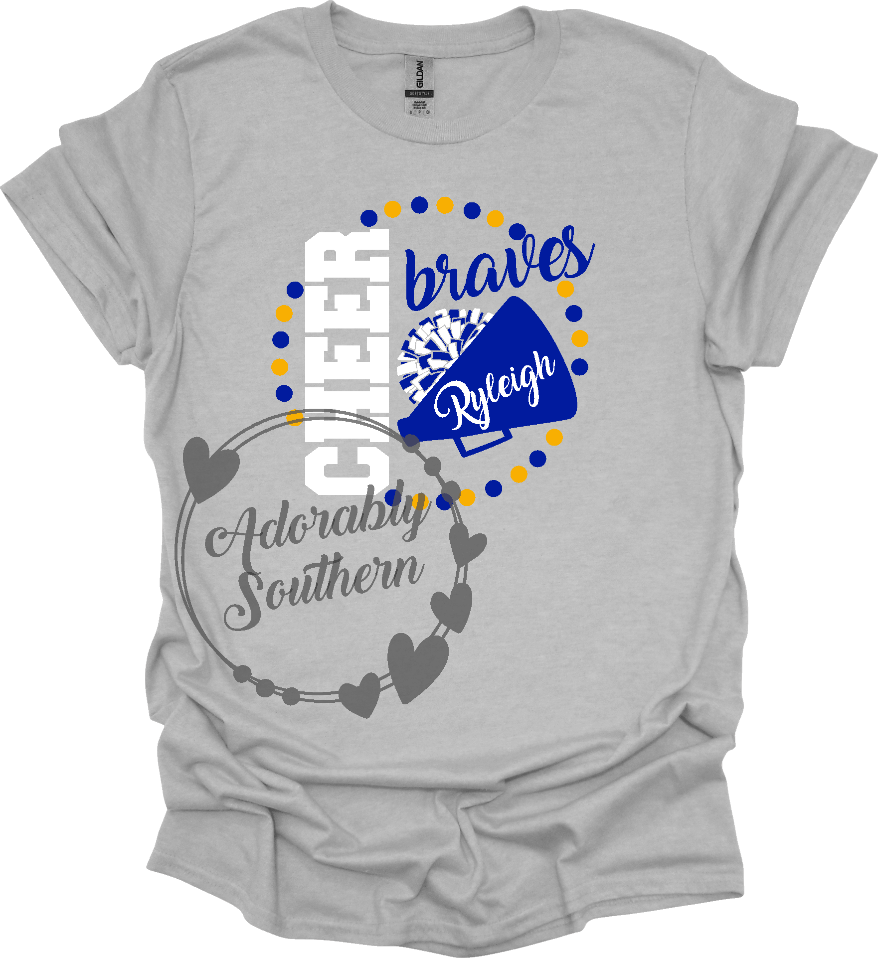 Vinyl designs are placed on quality unisex t-shirts with a professional heat press.