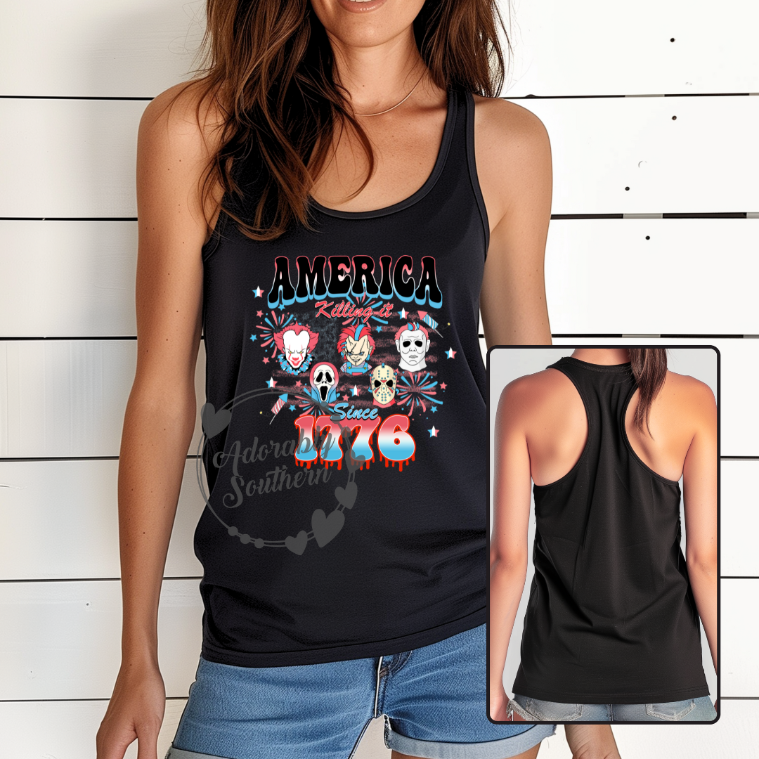 Vinyl designs are placed on quality unisex t-shirts with a professional heat press.