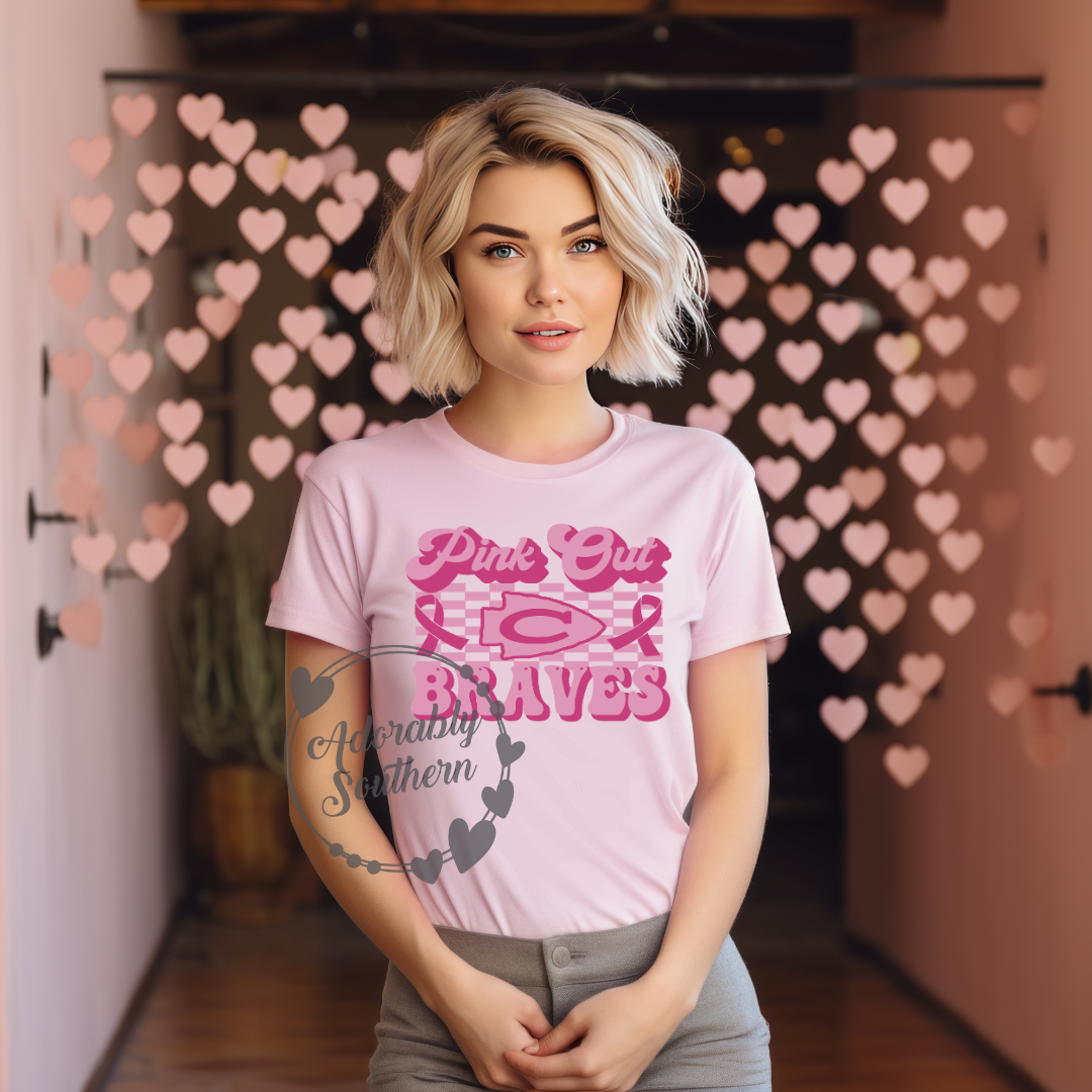 Vinyl designs are placed on quality unisex t-shirts with a professional heat press.